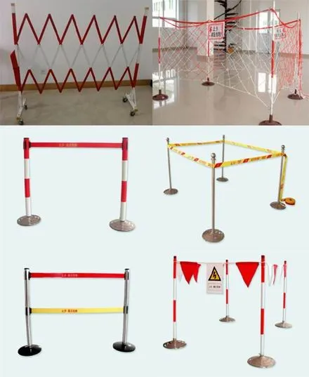 絕緣安全圍欄系指柵狀遮攔、網(wǎng)狀遮攔和板狀遮攔。柵狀圍欄的高度不應(yīng)小于1.2m,最低欄桿至地面的凈距不應(yīng)大于200mm,一般用圓鋼、鋼管、硬質(zhì)木材制作;網(wǎng)狀遮攔的高度不應(yīng)小于 1.7m,網(wǎng)孔不應(yīng)大于 40mm ×40mm;板狀圍欄的高度不宜低于1.9m,鐵質(zhì)隔板的厚度不小于2mm,寬度以500-600mm為宜。應(yīng)用于基建、試驗、檢修中的臨時圍欄,可用紅、白三角旗相隔并在設(shè)備上、專用支架上掛牢的繩子連接起來,紅白旗應(yīng)醒目,懸掛標(biāo)示牌應(yīng)方便。